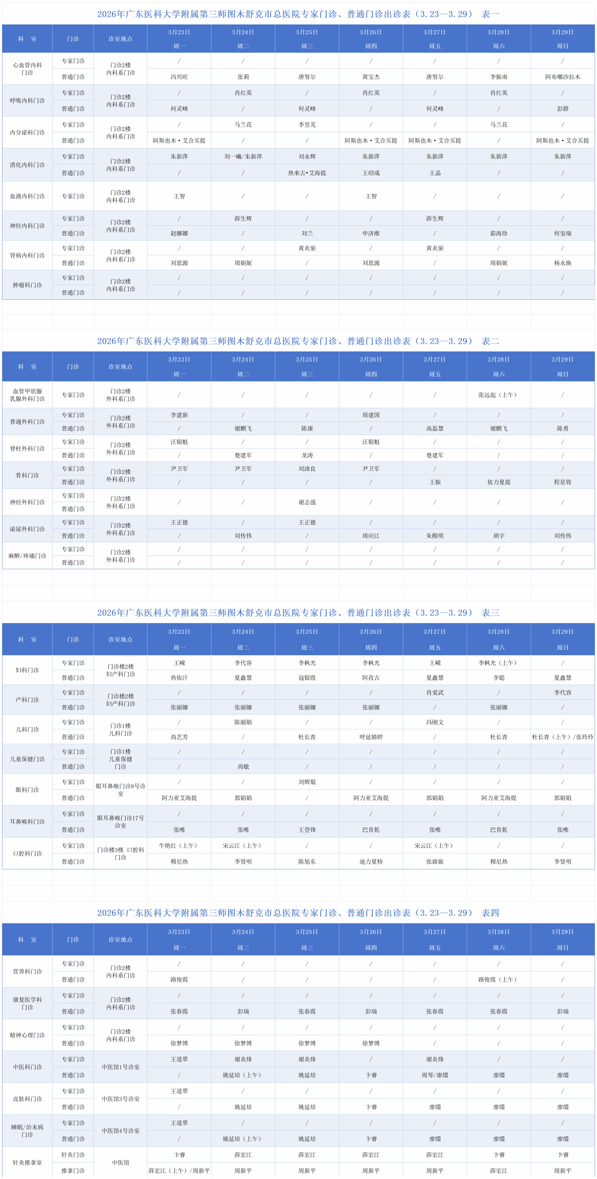 2026年3月23日—3月29日医院专家门诊、普通门诊出诊表来啦!