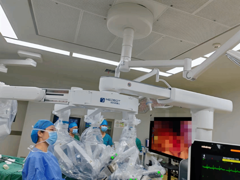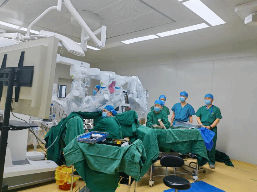 在手术过程中,冯珀霖主任稳坐在控制台前,在手术机器人独具立体感、层次感的显像系统帮助下精准操控机器人机械臂,在狭小盆腔内完成粘连松解、子宫血管的分离与离断、缝合等复杂操作,成功实现了对子宫及其周围组织的精细分离和切除,顺利完成了组织分离、止血、缝合等一系列精细步骤。整个手术过程流畅,视野清晰,解剖层次分明,出血量极少,最大限度地保护了周围的神经和血管组织,减少了手术创伤。整个手术团队配合默契,仅用时2小时便顺利完成手术,患者术后情况稳定。