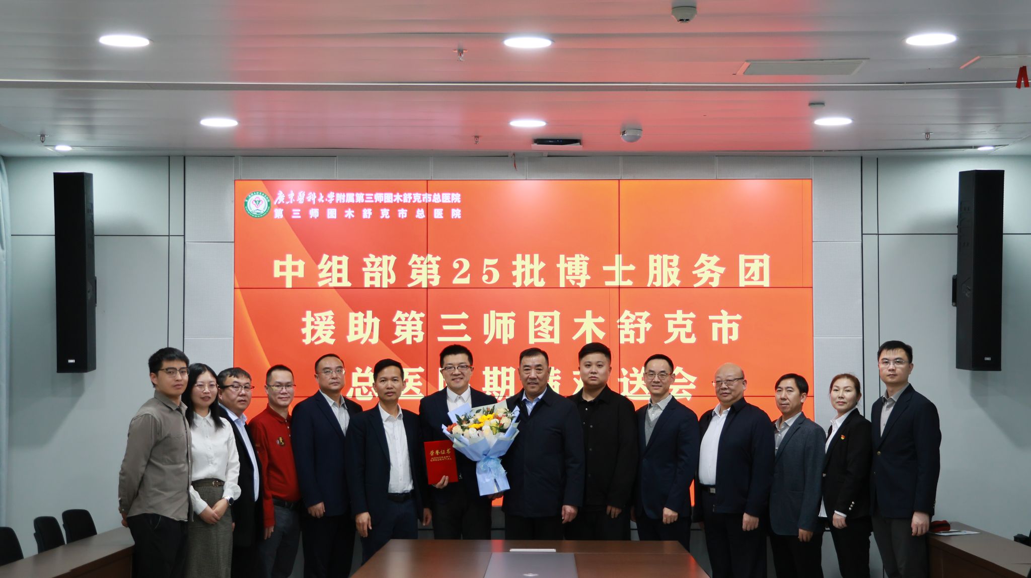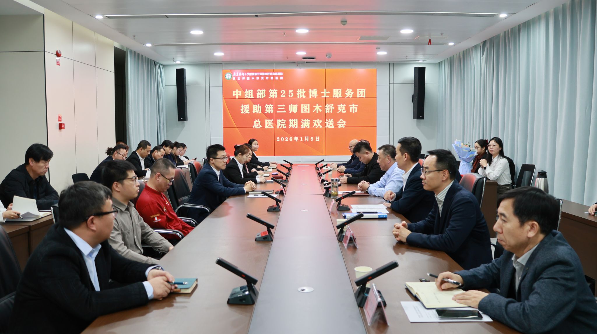 1月9日,第三师图木舒克市总医院举行隆重欢送会,为中组部第25批博士服务团成员齐曾鑫博士期满荣归送行。会议全面回顾了齐曾鑫博士跨越山海、扎根边疆的援疆历程,见证了这份千里同心、共筑健康屏障的大爱情谊。
