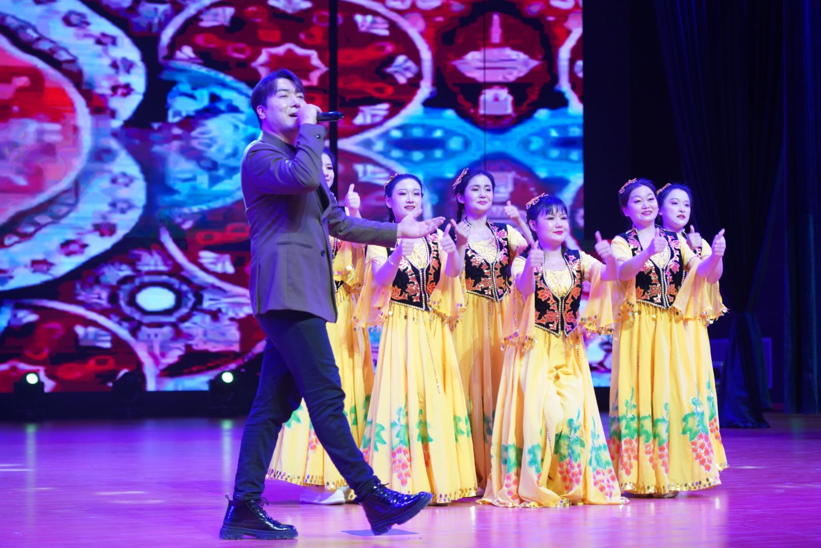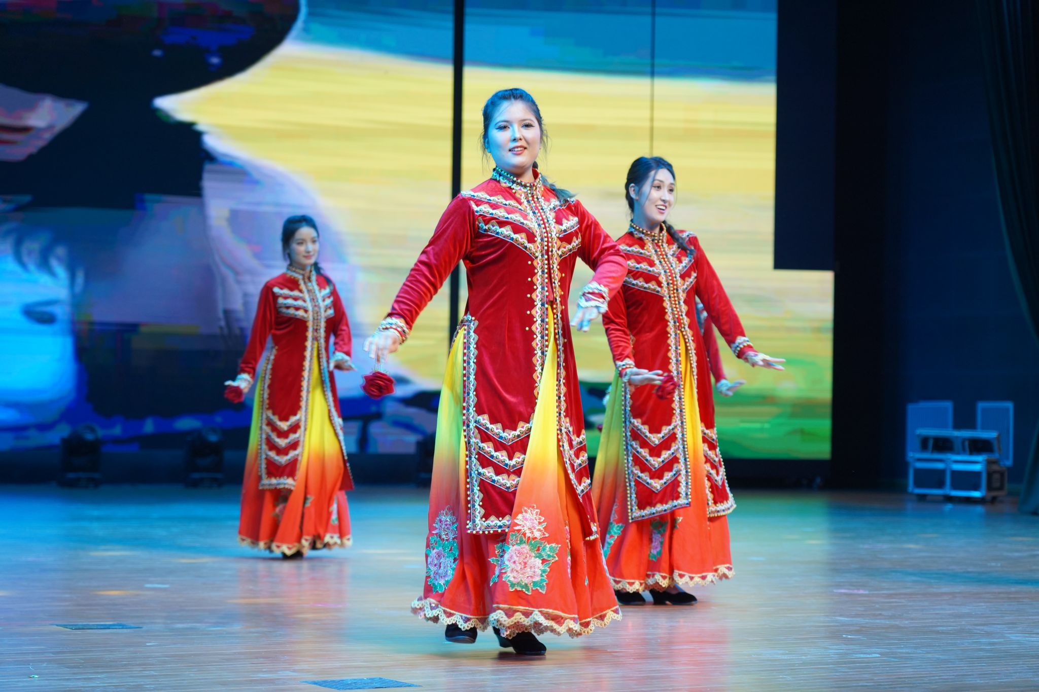 晚会在充满活力的《中华民族一家亲》舞蹈中热烈开场。随后,第一篇章“粤新共济·情满天山”深情展开,经典旋律《再唱山歌给党听》与诗朗诵《致敬,援疆的您》相映生辉,真挚抒发了对党的无限热爱及对援疆事业的崇高礼赞;援疆专家一曲《疆缘》悠扬动人,唱响了粤新两地心手相连、守望相助的深厚情谊;歌曲《援疆医生亚克西》以质朴而热烈的词句,深切讴歌了援疆干部的使命担当与为民情怀,将晚会气氛推向高潮。