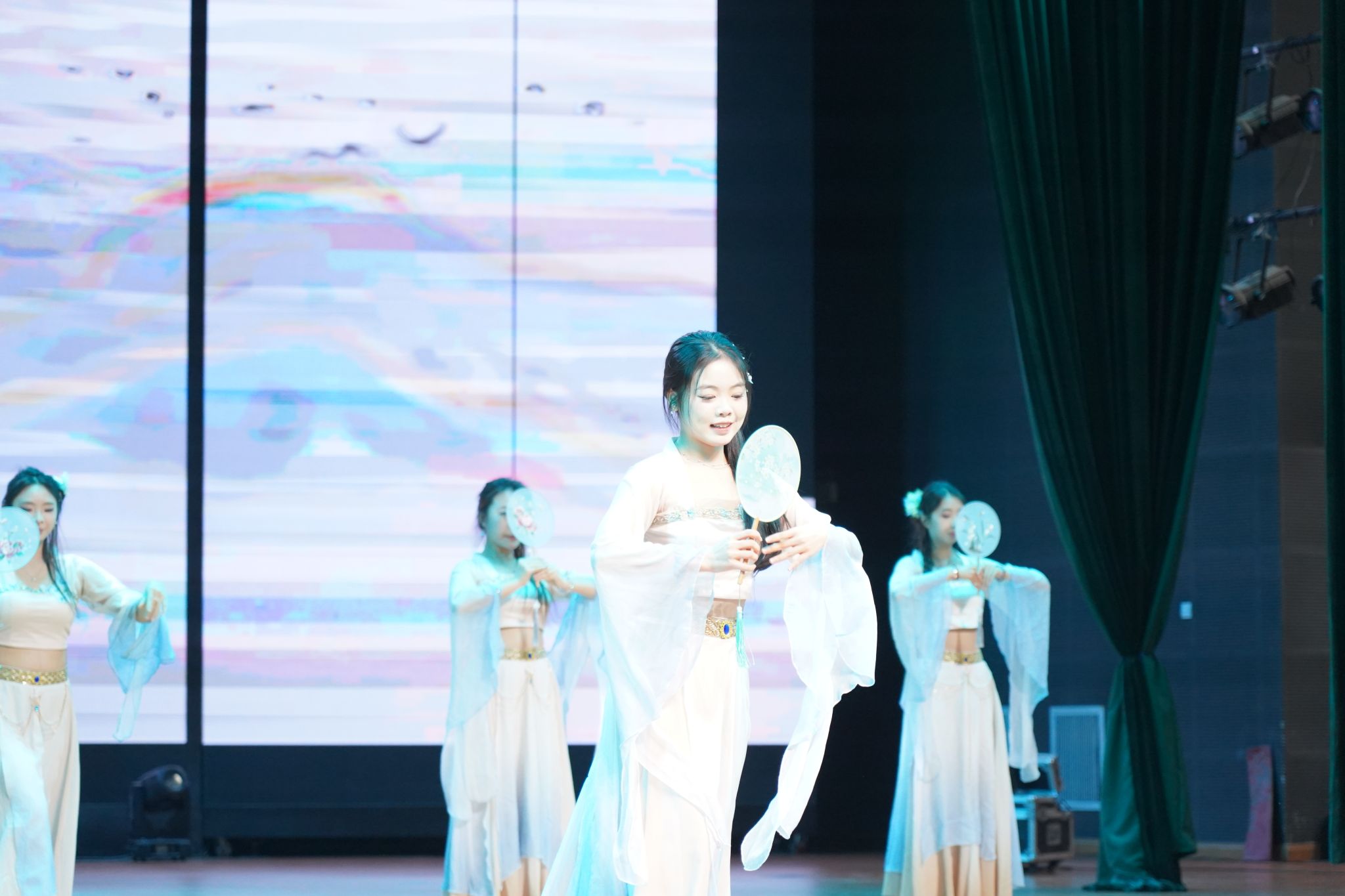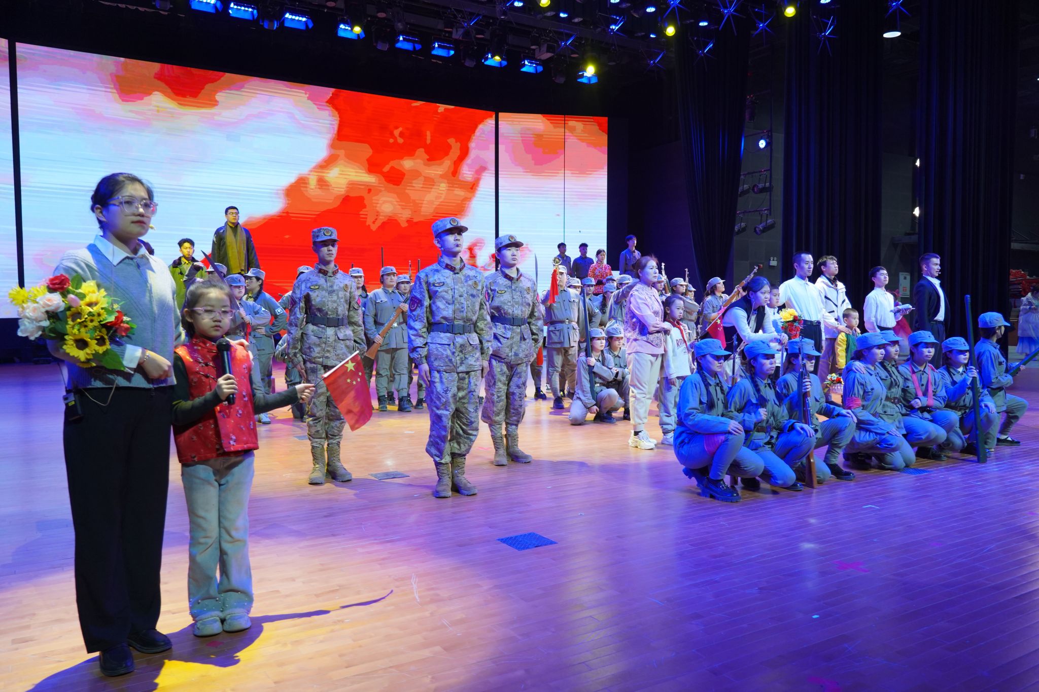 第三篇章“光荣梦想·大美新疆”在悠扬深情的歌曲《苹果香》中拉开序幕,以音乐抒发对新疆的深情赞美;随后,舞蹈《如愿》《铭记》以优美的肢体语言,凝练呈现家国情怀与代代相承的奋斗精神,舞出对美好未来的坚定信念;篇章的高潮情景表演《如你所愿》通过今日青年与牺牲先辈的跨时空对话,生动演绎历史的回响与时代的答卷,将全场情感与思绪推向巅峰,彰显铭记历史、开创未来的坚定意志。