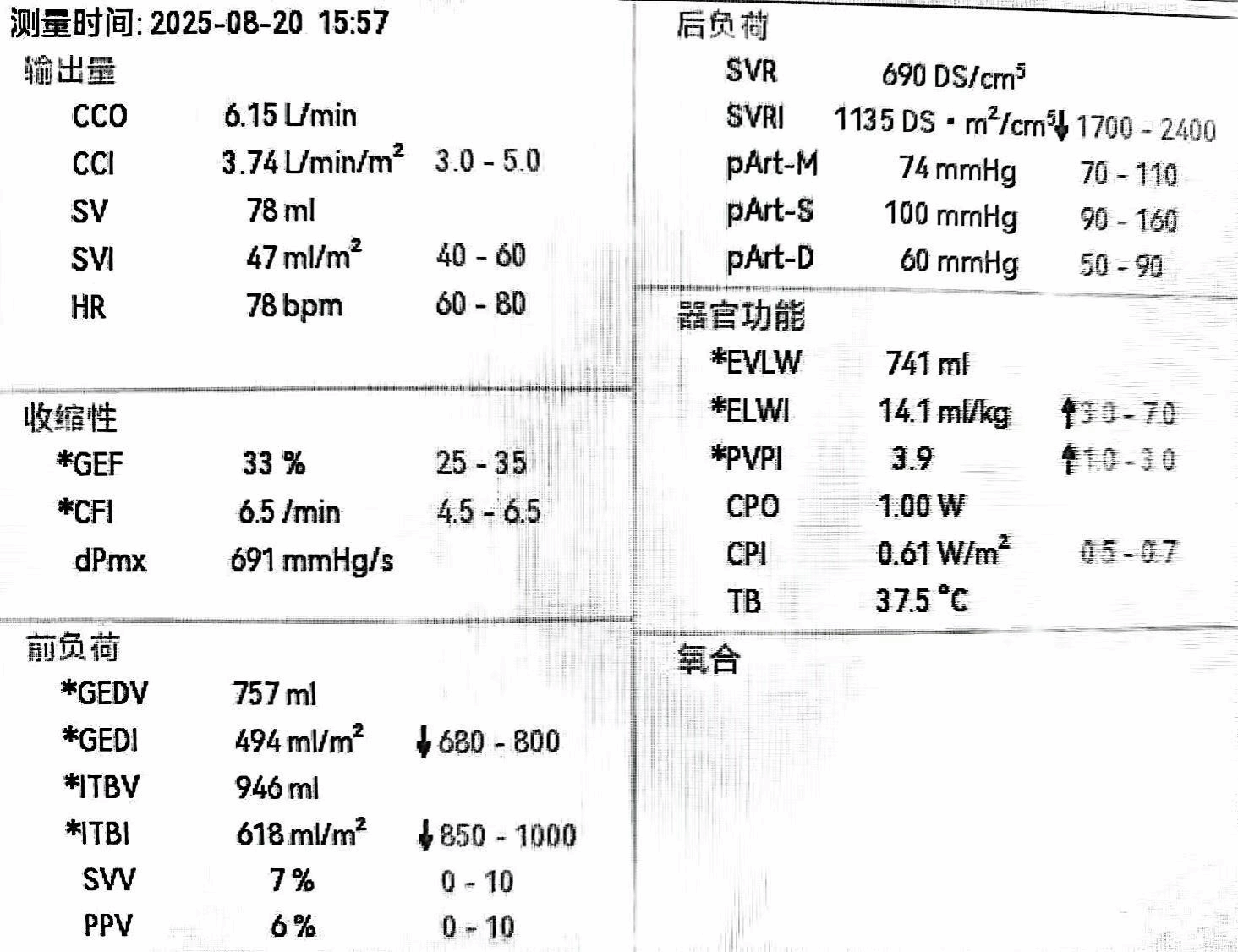 评估“容量状态”:通过胸腔内血容量指数(ITBI)、血管外肺水指数(ELWI),精准识别“血容量不足”或“液体过载”;