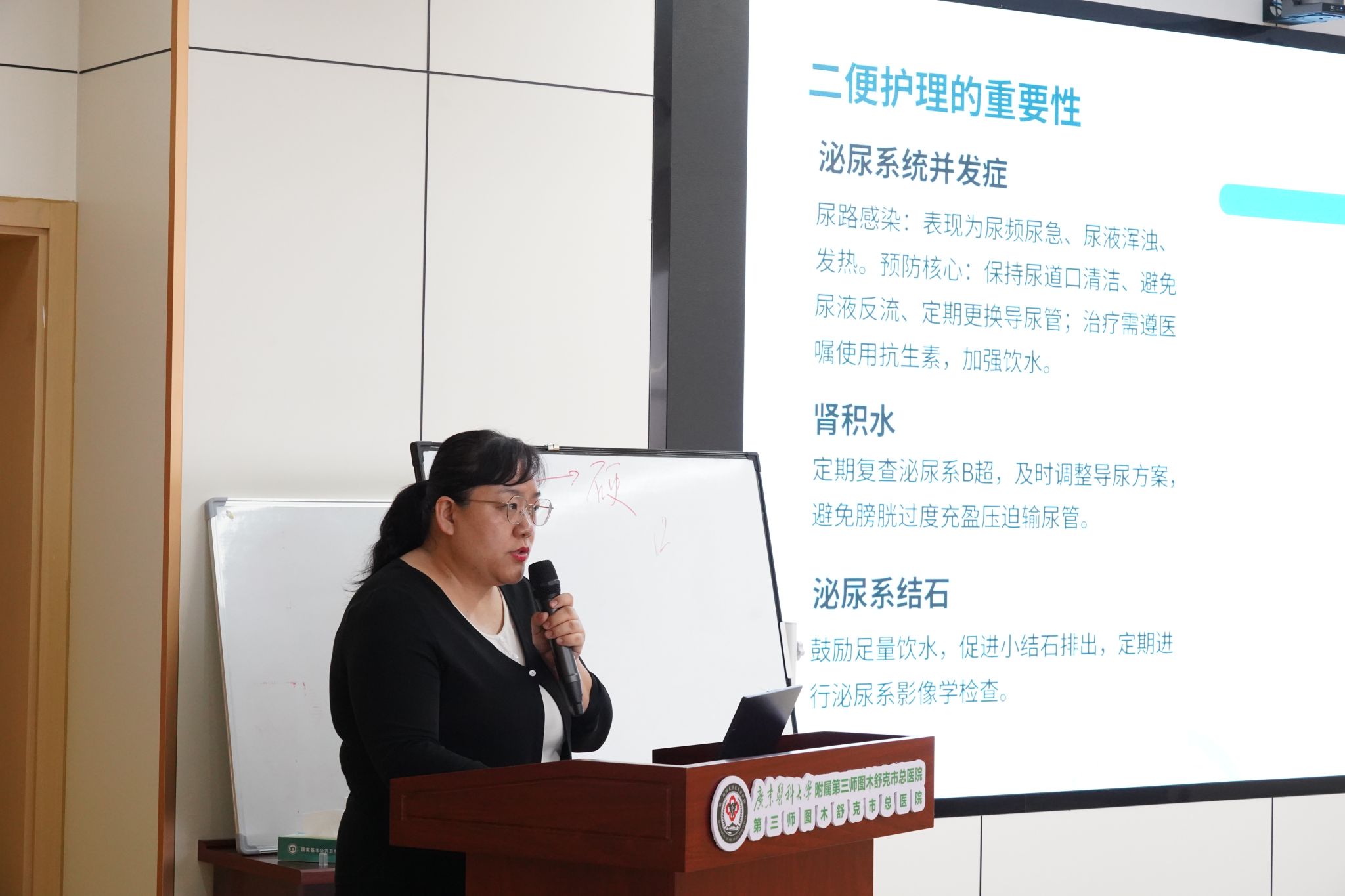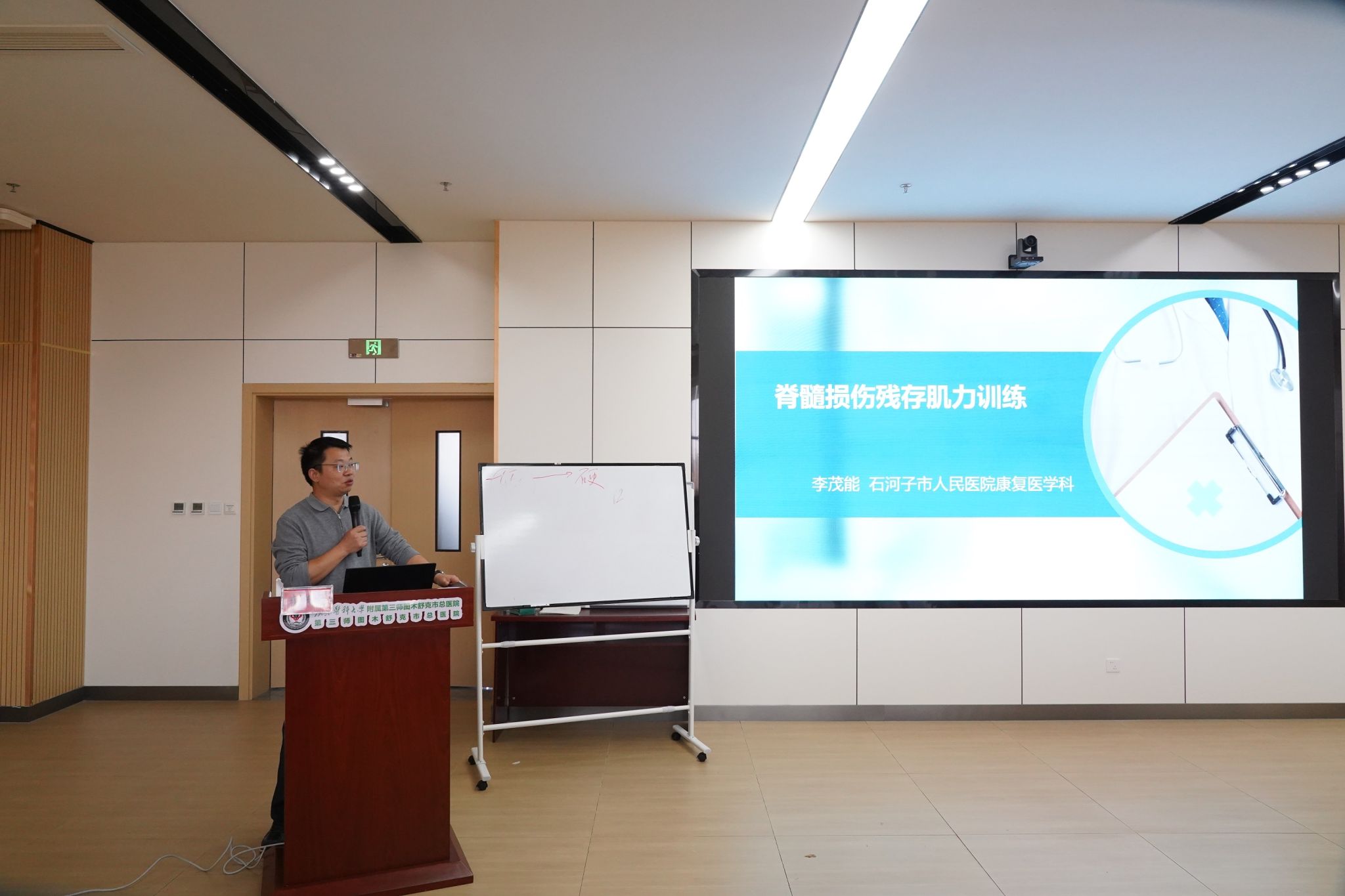 石河子人民医院康复医学科主任曹辉、技师长李茂能、护士长单丽君分别围绕康复评价体系、脊髓损伤的肌力训练、脊髓损伤的二便管理等主题,进行了专题授课与实践演示。