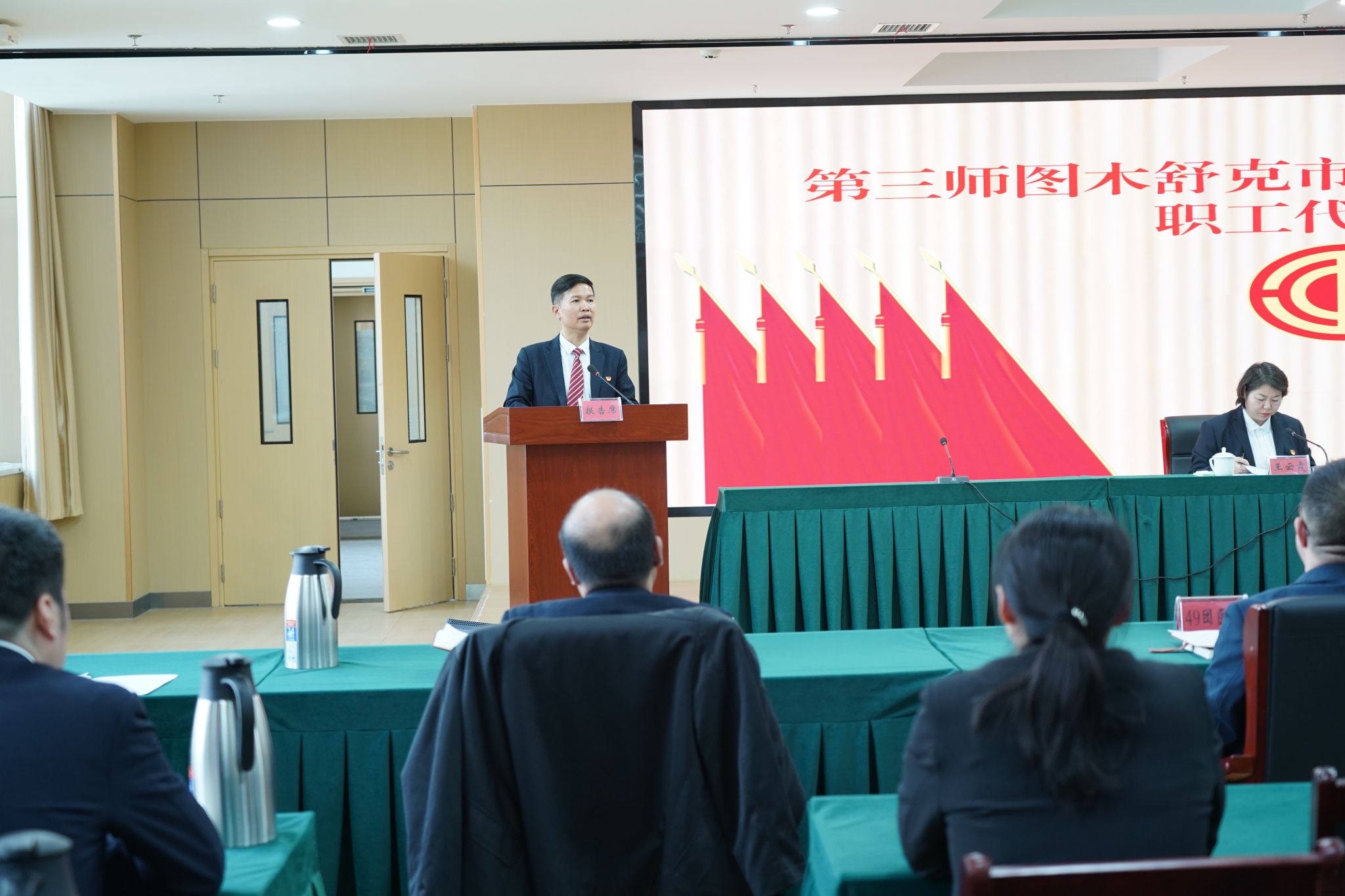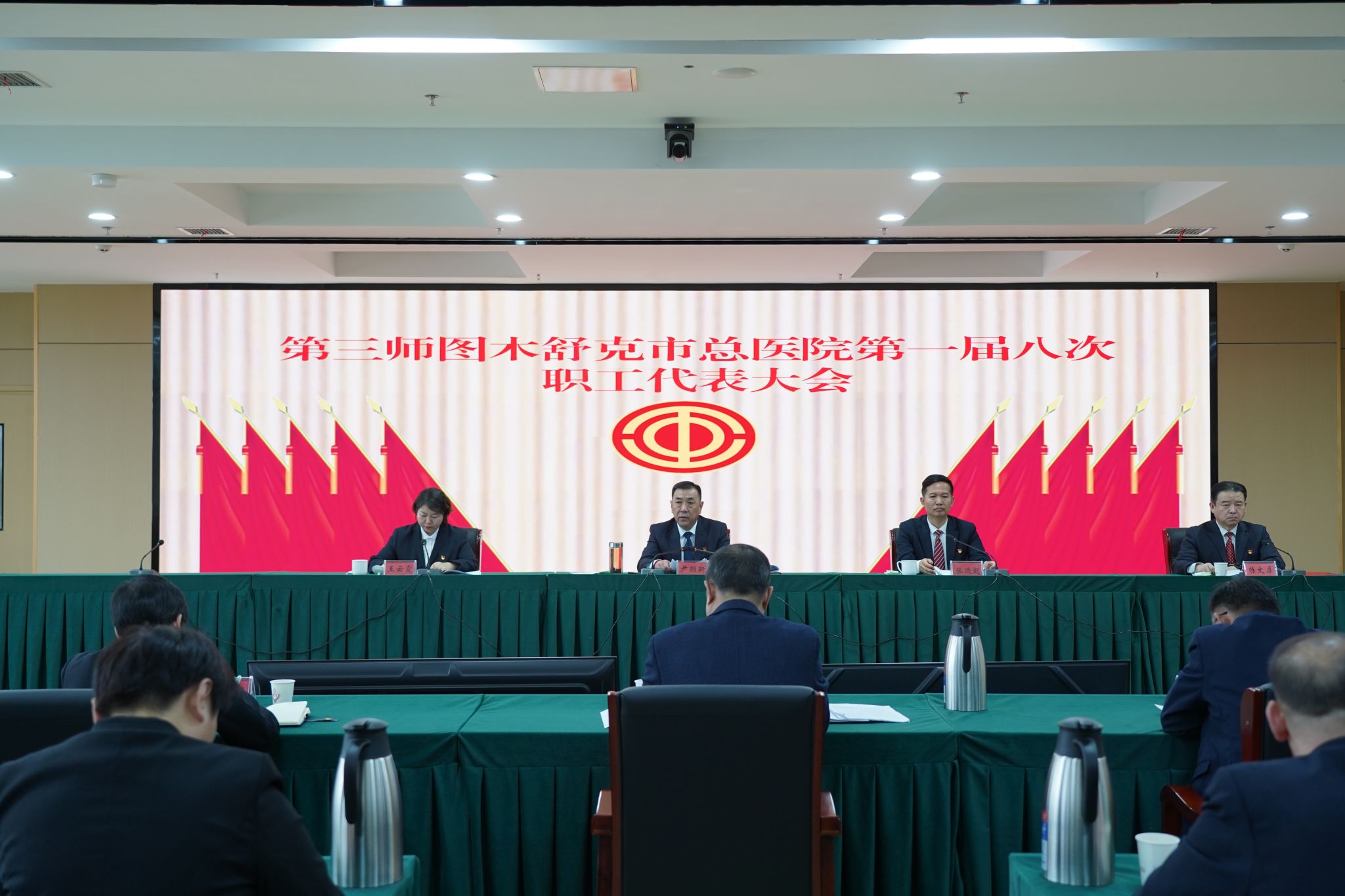 春潮涌动启新程,凝心聚力谋发展。2月11日下午,第三师图木舒克市总医院第一届八次职工代表大会隆重召开,师市医共体101名职工代表齐聚一堂,以高度的责任感和使命感共商发展大计、共绘高质量发展宏伟蓝图。党委委员、纪委书记、工会主席王云霞主持会议。