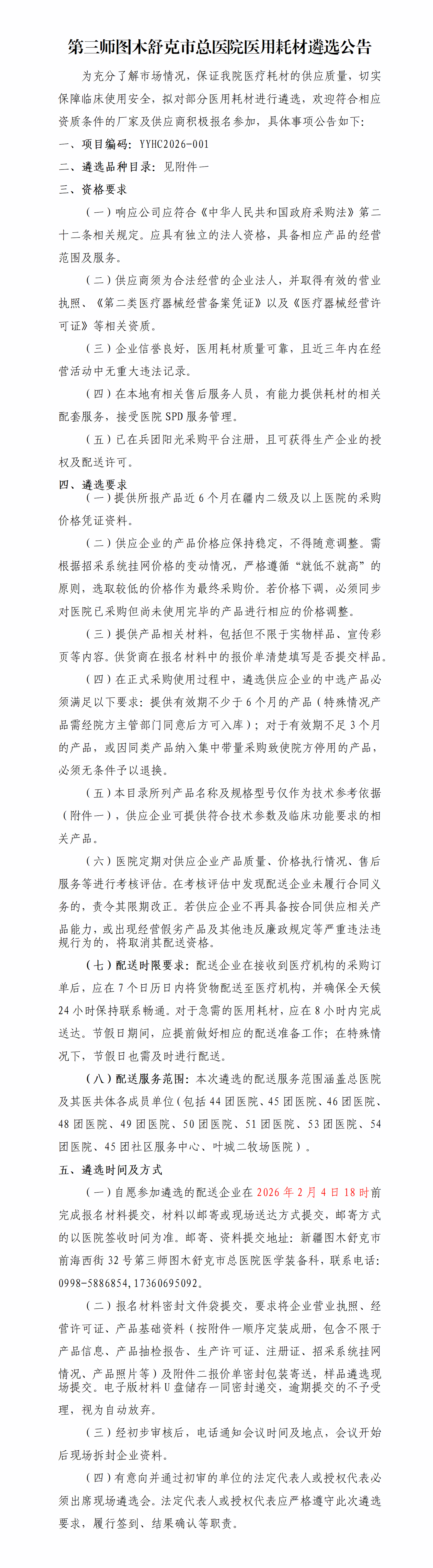第三师图木舒克市总医院骨科及口腔颌面外科非集采手术耗材遴选公告