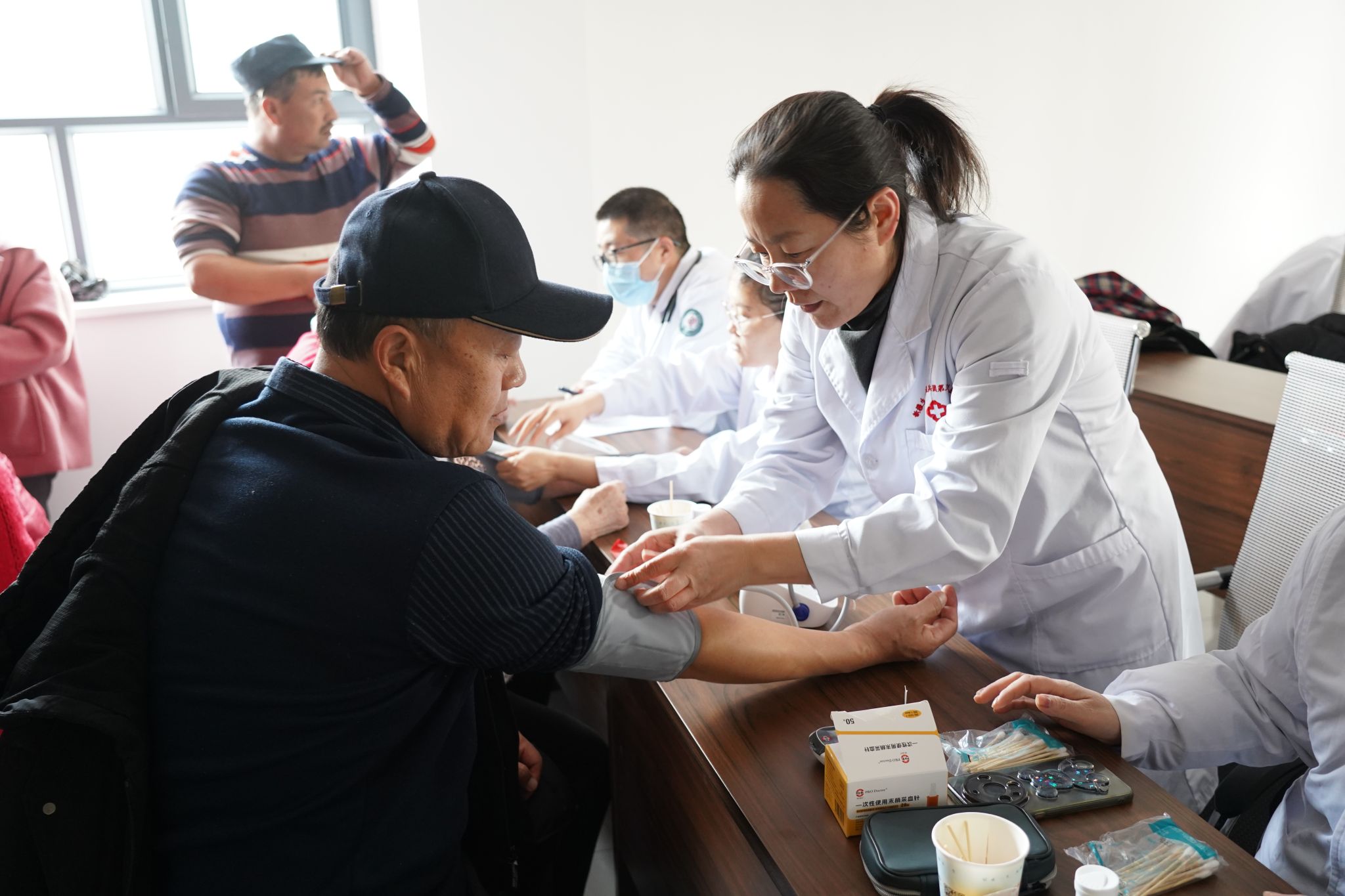 活动当日,医护人员一早抵达现场,佩戴党员徽章,携血压计、血糖仪等设备有序布置服务点位,以专业热忱的姿态迎接每一位居民。义诊内容包括健康咨询、血压血糖检测、合理用药指导等,并为有需要的居民免费发放药品。针对冬季高发的心血管疾病,专家重点开展疾病预防与日常管理指导,发放胸痛救治与急救知识宣传资料,增强居民健康管理意识。